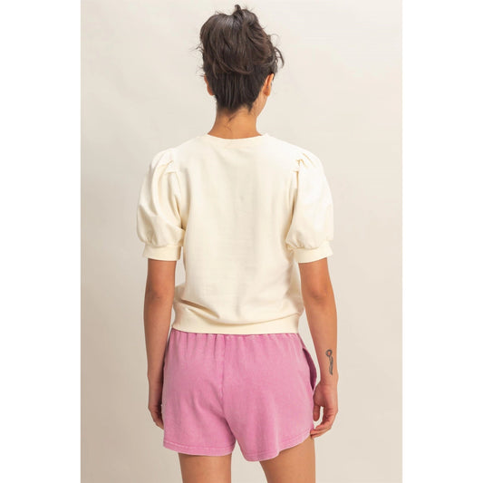 Color Block Ruffle Sleeve Floral Eyelet Top