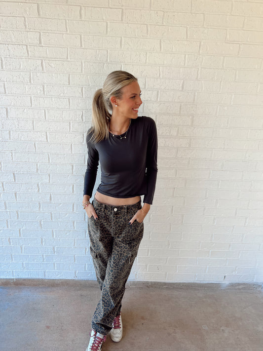 Sold outCheetah Denim Cargo Pants