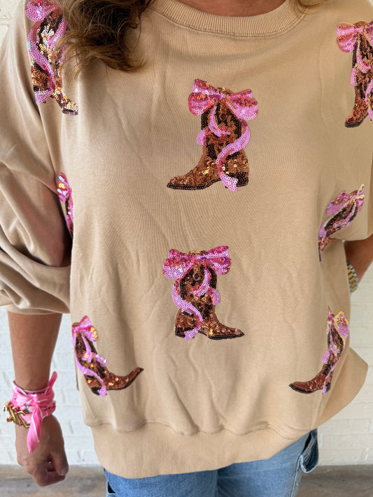 Cowboy boots bow crewneck